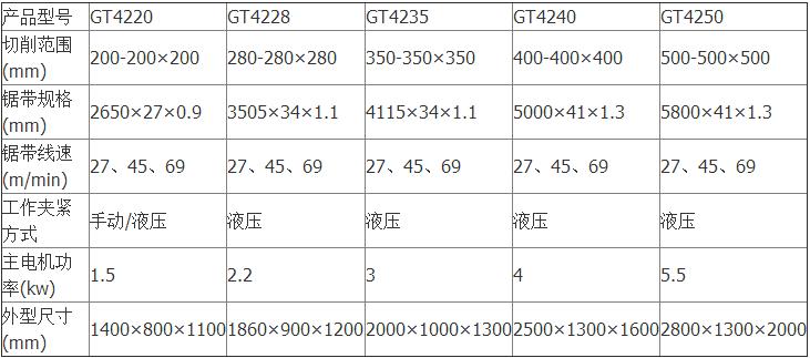 | 產品規格: | GT4228液壓金屬帶鋸床 | ||