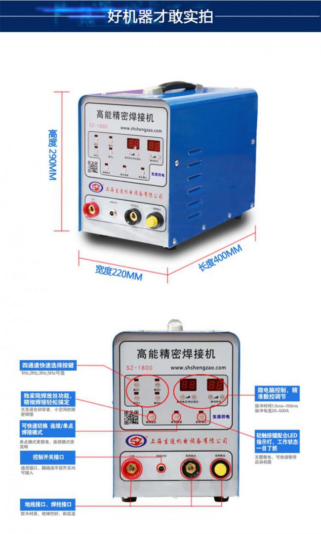 本機可將儲存于電容器中的電能在瞬間通過脈沖電弧的形式釋放于鎢極與工件之間,溫度極高的電弧使金屬材料組成的工件和焊絲迅速熔化而熔接在一起,達到焊補目的。這種焊補方法的特點是:時間很短,發熱量很小。