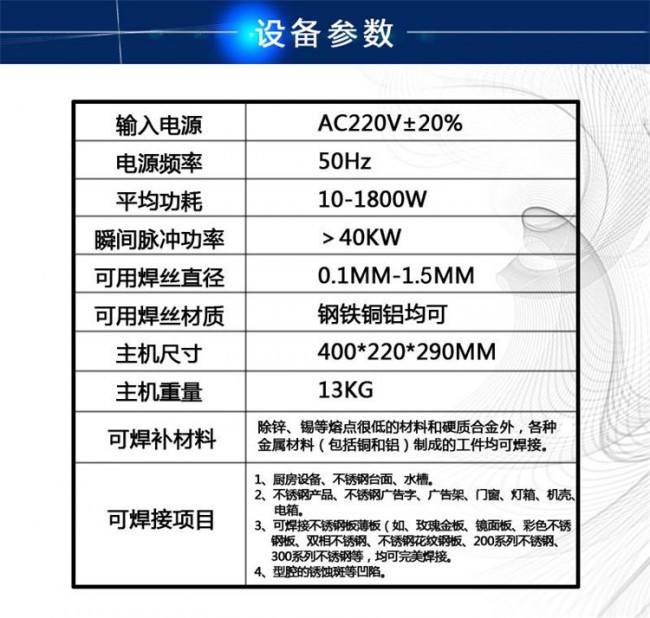 可焊補材料:除鋅、錫等熔點很低的材料和硬質合金外,各種金屬材料(包括銅和鋁)制成的工件均可焊接。