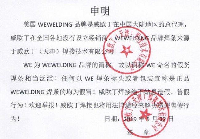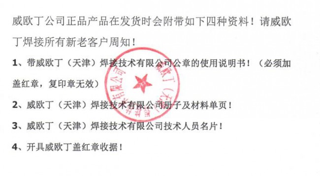 強調:威歐丁是美國WEWELDING品牌的總代理,威歐丁在各地沒有設立經銷商,WEWELDING631(簡稱威歐丁631)高速鋼焊條來源于威歐?。ㄌ旖颍┖附蛹夹g有限公司!