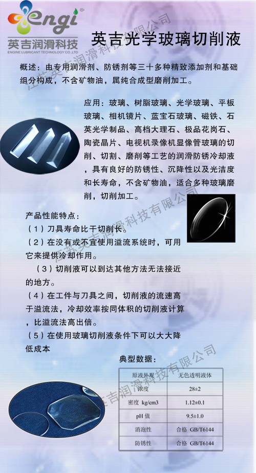 不含亞硝酸鈉,產品不會腐敗,使用壽命長。不起泡,磨削沉淀快,能快速沖走廢屑??捎糜诟呔鹊膾伖馓幚砗凸鈱W鏡片切削、磨削。
