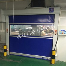 工作原理:單組或多組門扇構成的門體由各自獨立的控制系統控制,以實現每組門扇可單獨開啟。手按任何一組的開門按鈕,相對應的電機開始傳動鋼絲繩拉起門體下部的鋼過梁沿導軌上移、簾布折疊。