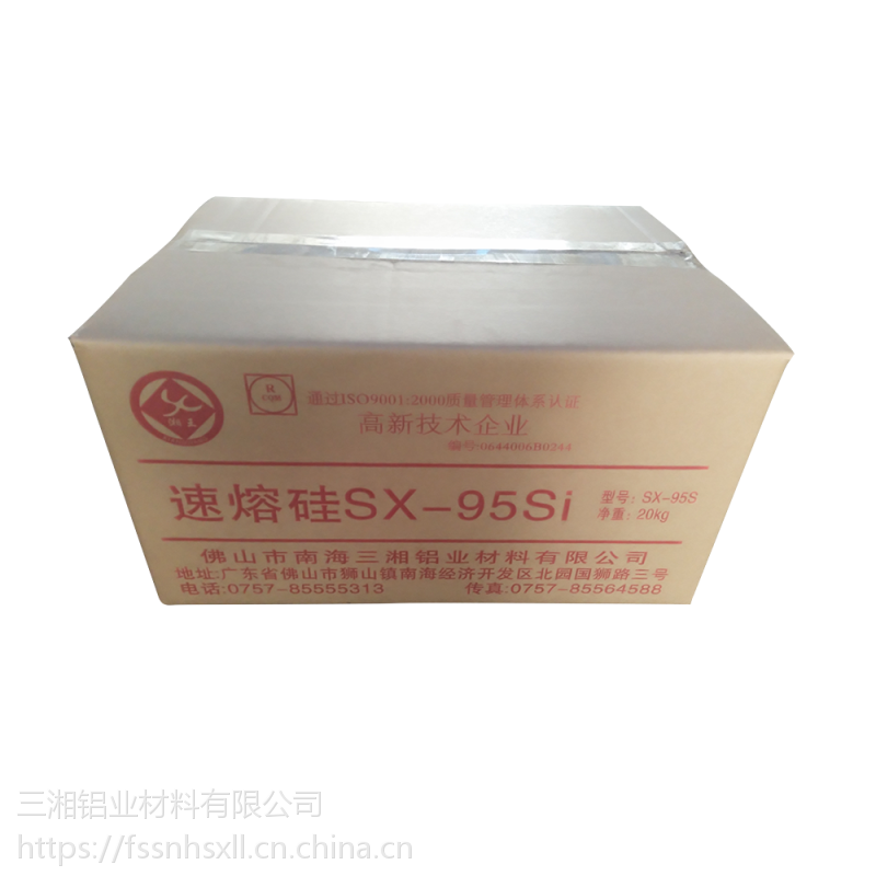 本品適用于添加或調整鋁合金中硅(Si)元素的含量,以代替鋁硅中間合金。本品含硅95\%以上,可以在正常熔化溫度下直接加入熔體,熔化速度快,使用簡單,硅的實收率大于90\%。