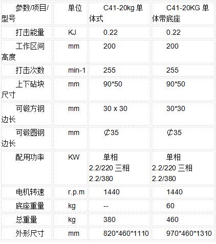 | 產品規格: | C41-20kg單體帶底座空氣錘 | ||