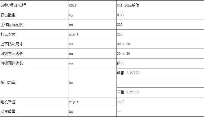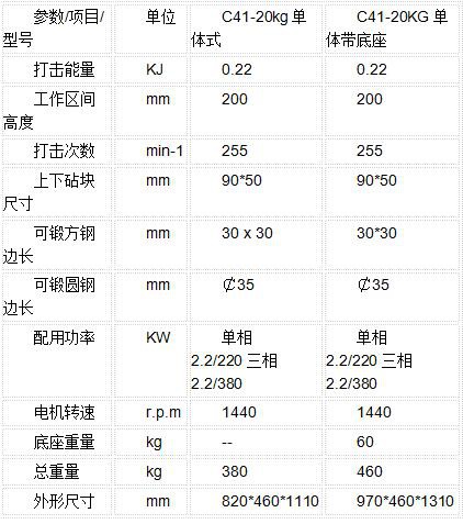 | 產品型號: | C41-20kg單體式空氣錘 | ||