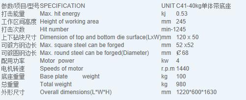 | 產品規格: | C41-40kg帶底座空氣錘 | ||