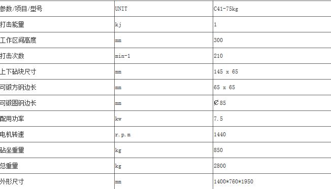 | 產品規格: | C41-75kg分體式空氣錘 | ||