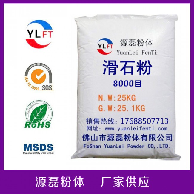滑石粉應用于改良橡膠,塑膠,樹脂之壓模,壓延,押出,射出等加工性能,及可替換部分昂貴之(膠料)10-15\%來降低原料成本并提供其物性。在油漆,涂料方面,耐爆嗮,抗高溫,在紫外線照射下不變色,能長期保持原有的光澤與色彩,有較好的耐酸堿腐蝕的性能,且耐水性好,耐污染,耐老化性能較強,耐磨,耐蒸汽和化學穩定性,及較強阻燃性能。