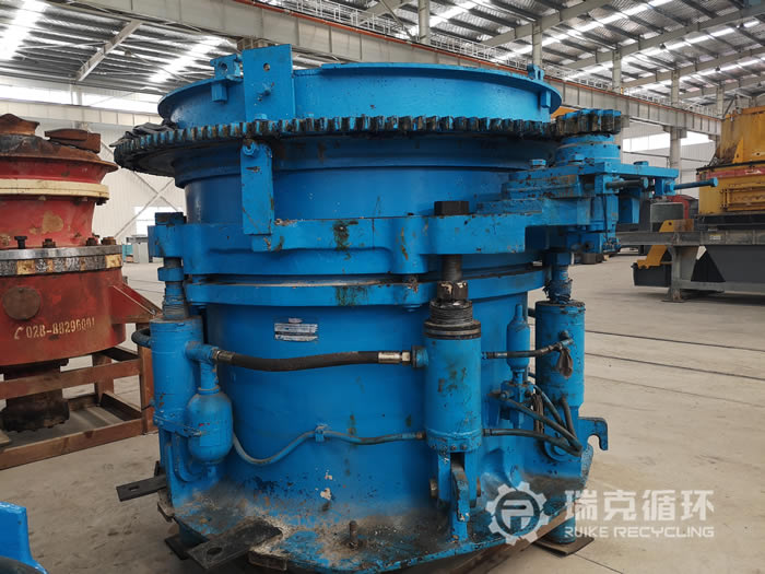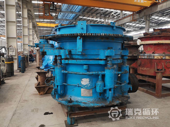 該臺HMP220多缸圓錐破碎機是我公司銷售人員2019年1月在山東某地回收的,回收之前設備還沒拆除,我公司技術(shù)人員對設備檢查之后又讓設備進行了運行,沒有發(fā)現(xiàn)比較明顯的損壞之后準予回收。在我公司車間技術(shù)人員把該設備進行了拆機檢查,對偏心軸、動錐等零部件進行仔細的檢查,發(fā)現(xiàn)主要零部件保存的都沒見完好,機身有明顯的銹跡。技術(shù)人員根據(jù)現(xiàn)場檢查情況下發(fā)了檢修通知,完成檢修和更換易損件之后進行數(shù)個小時的試機,我公司技術(shù)人員在現(xiàn)場仔細的檢查設備的運行狀況和試機數(shù)據(jù),在試機中沒有出現(xiàn)不良現(xiàn)象,各項技術(shù)也都符合標準。