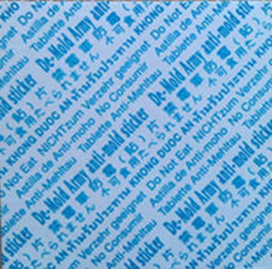 3.de-moldarmy禁霉菌防霉片整片裁切完成之設(shè)計,無需人工撕取,節(jié)省人力工時,方便易用,更可精確發(fā)料杜絕浪費;只須放置在物品旁邊,無須混合或接觸物品即可發(fā)揮強大防霉抑菌功效。