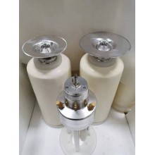 DISK氣動高速霧化器(風動馬達)是歐米茄圓盤型自動靜電自動噴漆設備部件之一;霧化器被垂直固定安裝在升降桿上;通過往復上下運動完成噴涂作業。氣動霧化頭在壓縮空氣驅動下轉速高達40000rpm;轉軸上安裝一個鋁合金圓盤(油漆霧化盤),液體涂料由泵浦輸送到霧化圓盤內壁,在離心高速旋轉作用下涂料產生霧狀向周邊擴散;在霧化器上接通高壓靜電(負極),使霧化涂料產生高壓電暈并迅速游向工件表面(接地正極),形成涂層從而達到噴涂目的。DISK高速霧化器霧化出來的涂料顆粒細小均勻,對于高粘度涂料也能產生微小顆粒,凹凸工件也有良好的涂層;節省30\%涂料,減少損耗排放。 適合各款式DISK圓盤型靜電涂裝機安裝及更換。(可代客戶維修氣動霧化器、霧化盤)可選配:¢170 ¢200 ¢220 ¢250 (mm)霧化盤。 如需了解更多,請致電盈暉配件部。聯系方式:13376568169、0758-2702681、傳真:0758-2702680。
