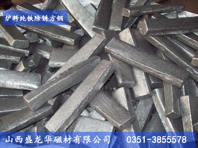 山西盛龍華磁材有限公司是經(jīng)營電磁純鐵DT3、DT4(A、E、C)系列產(chǎn)品和原料純鐵YT0(YT01)系列產(chǎn)品的專營公司。我公司為用戶提供各種規(guī)格型號的純鐵棒材(∮10mm-∮130mm)、純鐵板材(≠0.5mm-≠100mm)、純鐵鍛材(∮100mm-∮350mm)、純鐵盤條(∮2mm-∮42mm)、純鐵板坯(方坯)220*1250*3000、純鐵冷拔材(∮0.2mm-∮50mm)。我公司銷售的電磁純鐵(DT4)系列產(chǎn)品具有矯頑力(Hc)低,導磁率高,飽和磁感(Bs)高,磁性穩(wěn)定又無磁時效,鋼質(zhì)純凈度高,紅脆敏感性小等特點廣泛用在電工電器、汽車機床電器、繼電器、磁粉離合器、電梯、閥門、磁選機等生產(chǎn)制造企業(yè),原料純鐵(YT0)系列產(chǎn)品含超低碳、低硅、低錳、低硫、低磷廣泛提供給釹鐵硼、永磁材料、非晶態(tài)合金、電工合金、精密合金、不銹鋼爐料等行業(yè)。我公司擁有五千平米鋼結構庫房常年庫存千余噸純鐵現(xiàn)貨資源,下設純鐵加工廠,可為用戶加工及鍛造、拔絲各種純鐵制品,我公司產(chǎn)品價格優(yōu)惠,訂貨數(shù)量不限,供貨及時,并且為用戶代辦鐵路、公路全程服務。