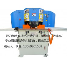 雙刀鋁材吊頂邊框精密切割機雙刀切割機特點: 適合45°鋸切(推開門窗框、鋁擠型、門框、燈箱、屏風、飾條、室內裝飾等材料……) 1.雙刀…